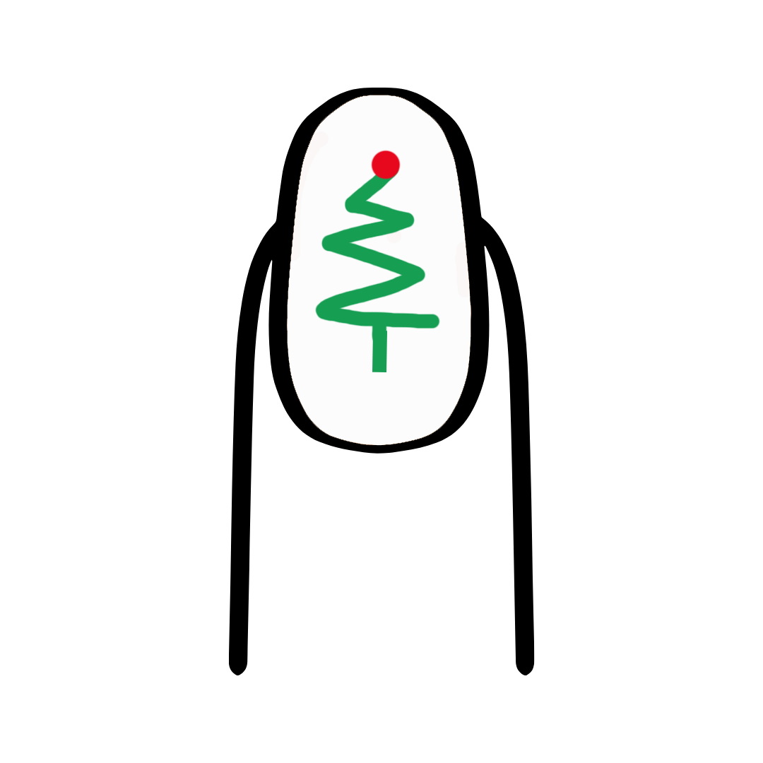Ajoute des zigzags vers la gauche et la droite pour créer la forme d’un sapin stylisé. Avec ton vernis Cherry Crush YAKA, ajoute un petit point rouge en haut pour faire l’étoile,